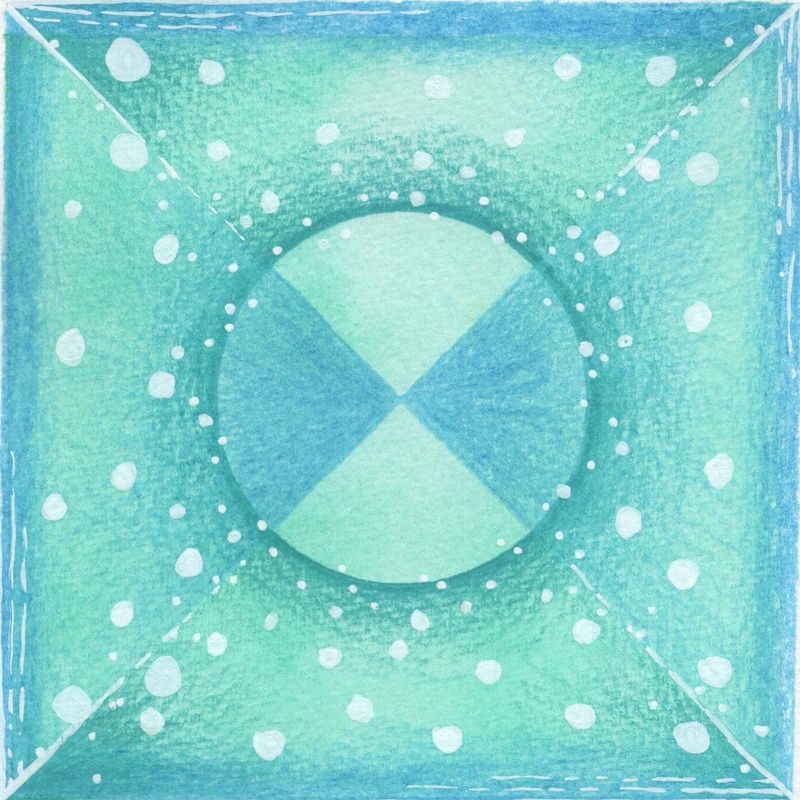 Je les ai rempli de gouache en suivant grossièrement le nuancier officiel, dans un dégradé en spirale, qui me rappelle un peu un plateau de jeu de l’oie.